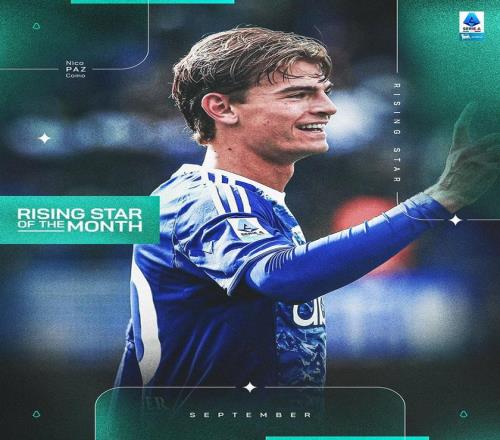 意甲官方宣布,科莫中场尼科-帕斯获得了9月份新星奖(最佳U23球员奖)。颁奖仪式将于2025年10月19日科莫主场对阵尤文图斯赛前进行。