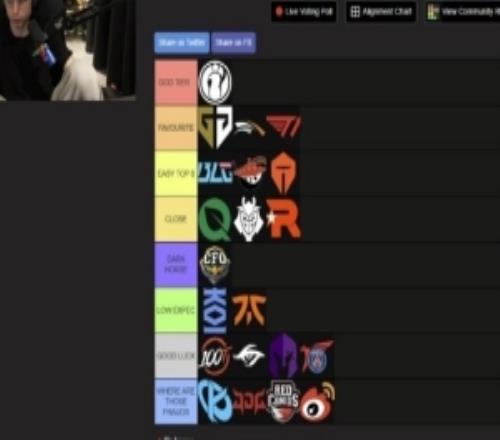 体育资讯10月10日报道宣称 caedrel列出了自己对于本次S15的世界赛战队评级;