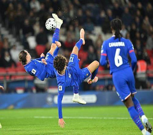 替补姆巴佩出场的托万,在时隔多年回归国家队的第一场比赛立即取得进球,他在禁区前左侧策动进攻,然后在门前接到特奥的传球,冷静调整后半转身凌空抽射破门。托万虽然是2018世界杯冠军队成员,但已经6年没有得到德尚的青睐,他是在巴尔科拉受伤后被临时召入球队的,这次回归堪称完美。