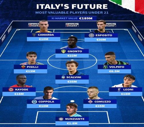 北京时间10月12日,德转统计出了身价最高的意大利U21球员最佳11人阵容,斯卡尔维尼以3500万欧元的身价领衔,皮奥-埃斯波西托、卡马尔达、尼奥托、莱昂尼以及皮西利在列。
