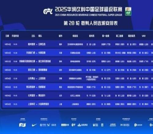 中超第28轮裁判安排公布中国足球 10-24 15:46中超官方公布第28轮裁判选派安排。乌兹别克斯坦裁判员伊尔吉兹·坦塔舍夫将执法山东泰山VS上海海港。马宁执法北京国安VS青岛海