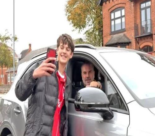 太阳报:澳波下课后被拍到和球迷合影,脸上依旧带着微笑